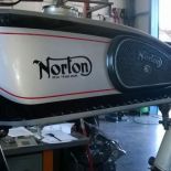 ...and BMW. We particularly like British brands like this awesome 1938 Norton M30 International 500 cc racer. The current owner purchased it with a broken engine and we have undertaken the complete restoration with a particular focus on the engine.